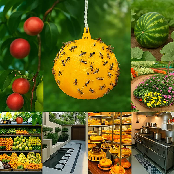 Ιδανικές για διάφορους χώρους, αυτές οι παγίδες μπορούν να χρησιμοποιηθούν σε κήπους, θερμοκήπια, κουζίνες, βεράντες και κοντά σε οπωροφόρα δέντρα. Είναι αποτελεσματικές στον έλεγχο των προσβολών και στη διακοπή του κύκλου αναπαραγωγής των παρασίτων, εξασφαλίζοντας ένα πιο ευχάριστο περιβάλλον.