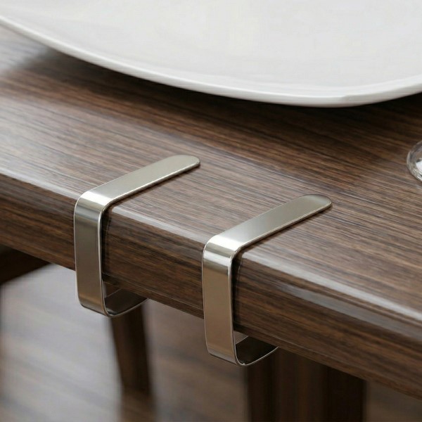 Εύκαμπτα κλιπ τραπεζομάντηλου για να κρατούν το τραπεζομάντηλο σταθερά στη θέση του. Από ανοξείδωτο ατσάλι.