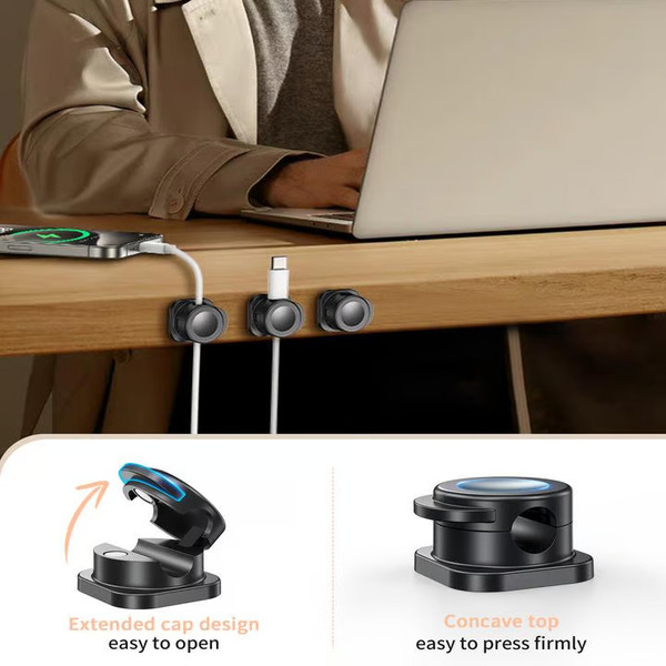 Διατηρεί τα καλώδια φόρτισης τακτοποιημένα και αποτρέπει την πτώση τους από το γραφείο.