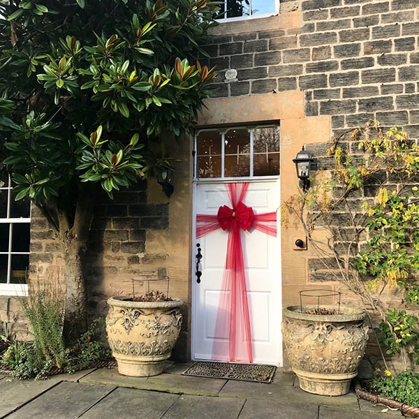 Ντύστε την πόρτα σας με τις πολυτελείς διακοσμήσεις μας με φιόγκο. Με μια κορδέλα μήκους 750 εκατοστών, μπορείτε να διαμορφώσετε και να προσθέσετε μια όμορφη εορταστική ανανέωση στην εξώπορτά σας. Είτε πρόκειται για τα Χριστούγεννα, είτε για γάμους, είτε για baby showers, το RUBYBOW ενισχύει τη γιορτή.