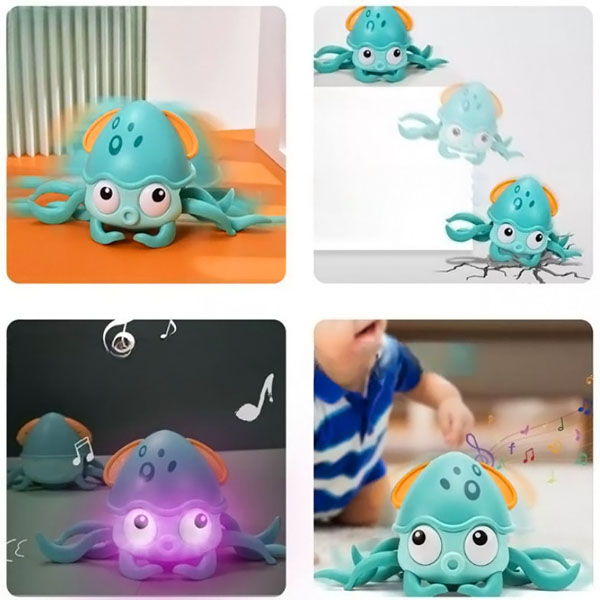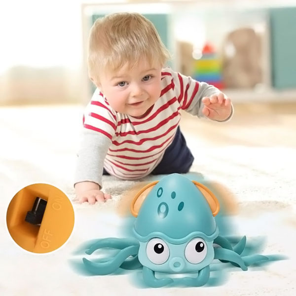 Αυτό το παιχνιδιάρικο χταπόδι σέρνεται, εμπνέοντας τα μωρά να ακολουθούν και να αναπτύσσουν τις κινητικές τους δεξιότητες.