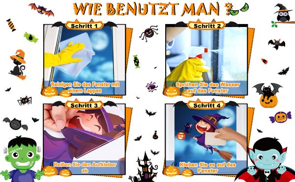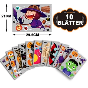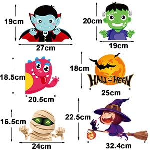 • Μέγεθος: Αποκριάτικα αυτοκόλλητα παραθύρου, που αποτελούνται από 10 αυτοκόλλητα, το καθένα 21 x 29,5 cm